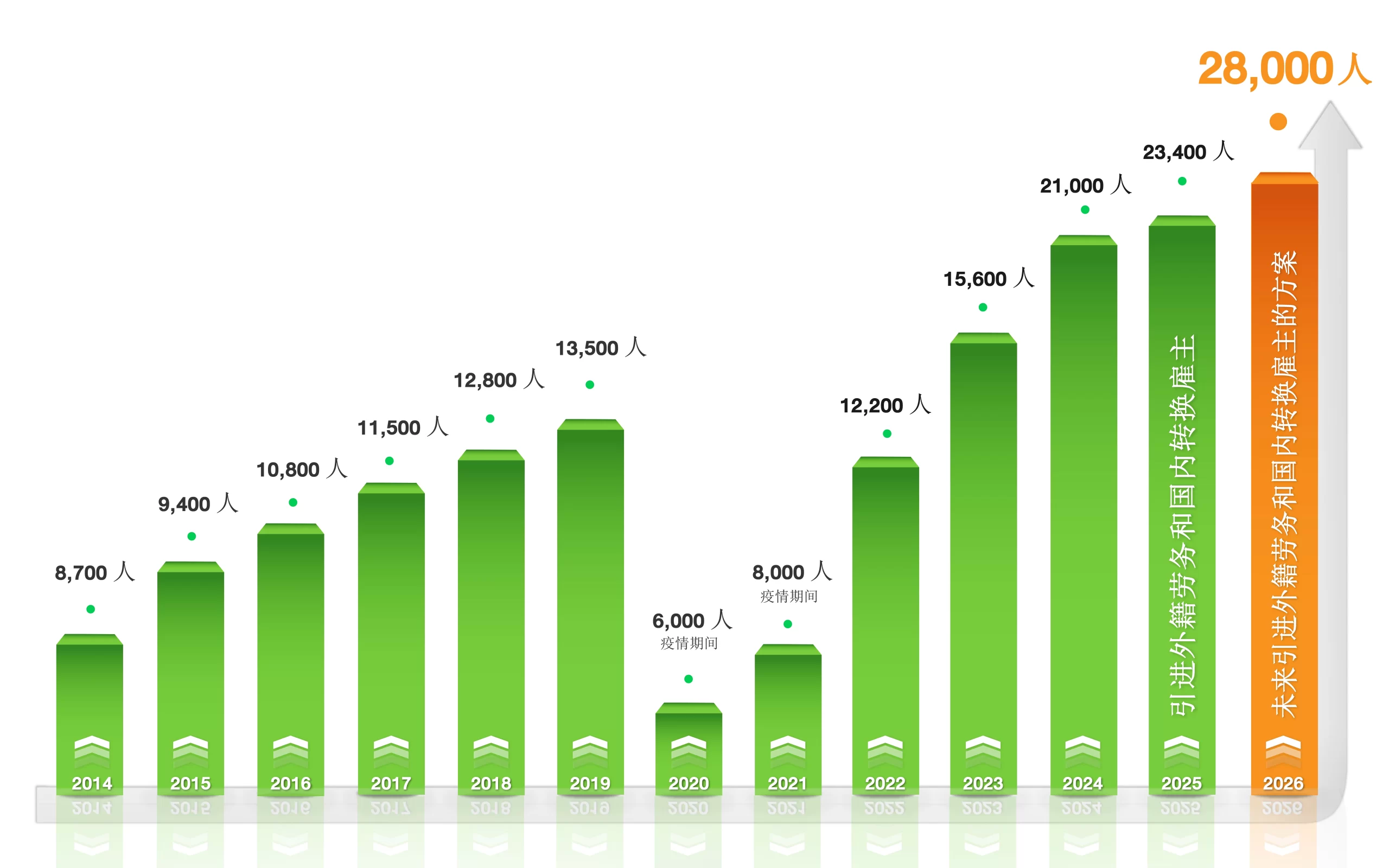 引进外籍劳务与国内招聘转换雇主的年度绩效指标 (KPI)